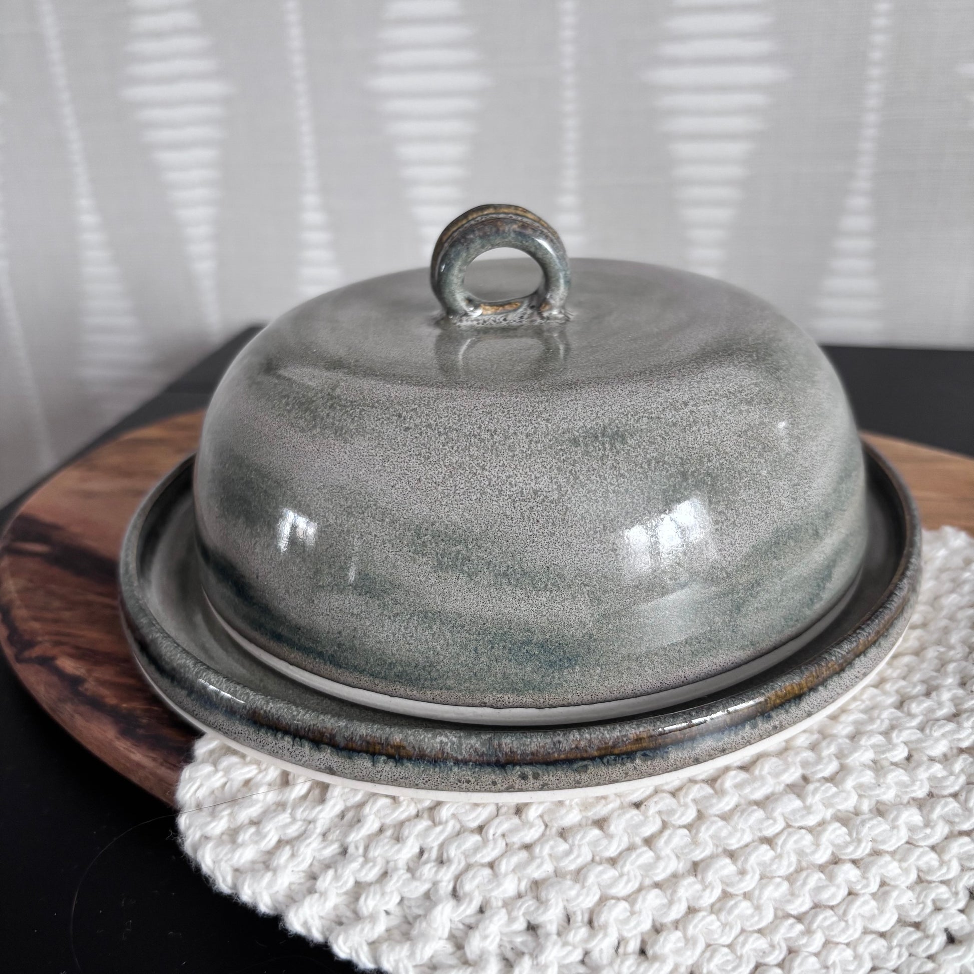 Beurrier en grès fabriqué à la main.