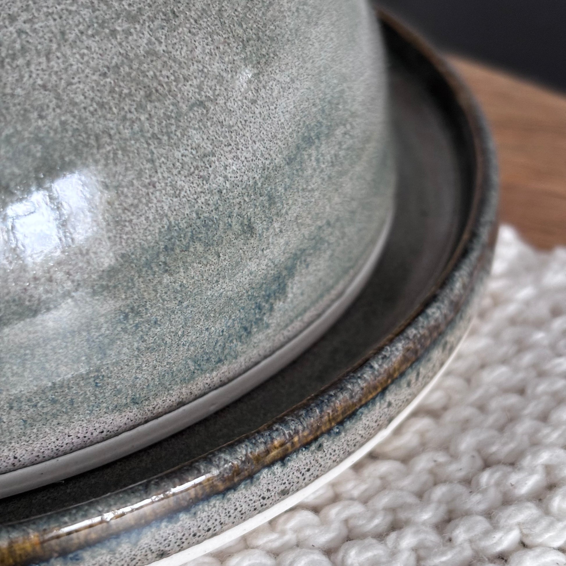 Son gris nuancé de brun profond révèle sa propre couleur créée par l'émail apporte une touche sobre et contemporaine à la table.